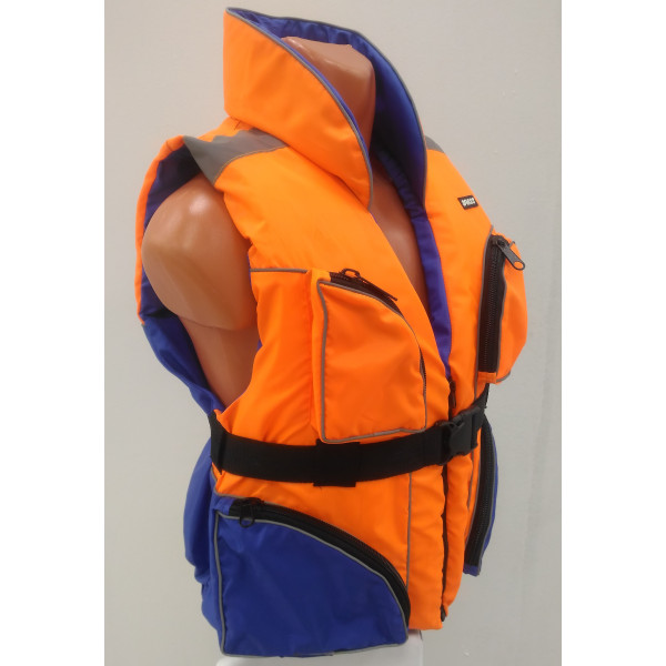 Спасательный жилет "Франкарди" имеет 5 различных размеров и предназначен для людей весом от 60 до 140 кг. Спасательный жилет "Франкарди" имеет свои особенности - односторонний, двухцветный (верх оранжевый, низ синий), 4 объемных кармана на молнии. Нижняя часть спины без наполнителя. Это помогает человеку находиться в воде всегда лицом вверх, а также проще и удобнее подобрать размер жилета, особенно с учетом осенней рыбалки в теплой одежде. Жилет очень удобен и не сковывает движения. Жилет укомплектован свистком, который крепится на шнуре в нагрудном кармане. Жилет предназначен для рыбалки, охоты и активного отдыха.