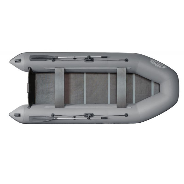 Для повышения устойчивости курса, снижения «рыскливости» лодка имеет килеватое днище, а также стационарный транец под установку двигателя. Пол, имеющий толщину 9мм, выполненный по типу «книжка» обеспечивает удобство пассажирам при рыбалке с лодки. Баллон лодки разделен на три камеры, что очень важно с точки зрения безопасности. Изготовлена лодка из прочного ПВХ иностранного производства. Наличие кильсона обеспечивает лодке улучшенную маневренность и управляемость.